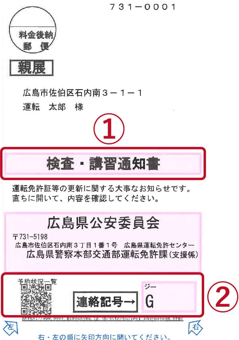 受検する日時・場所は「臨時認知機能検査通知書」に記載されていますので、