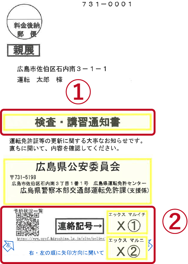 「検査・講習通知書」連絡記号Y① , Y②の方